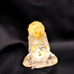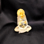 Petite Gaïa assise, souffle posé. La résine transparente laisse circuler la lumière, les feuilles d’or éveillent une chaleur solaire. Cette figurine invite à tendre l’oreille vers la nature qui murmure au dedans. On s’ancre, on respire, on se relie au cycle simple du jour. Aube d’Or devient un repère discret pour se souvenir de ce qui nourrit vraiment, terre, corps, cœur. Sur un autel, près d’une plante ou d’une fenêtre, elle clarifie l’espace et rappelle la voie du vivant.