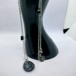 Collier argenté en labradorite et lave noire. Protection, intuition, ancrage.