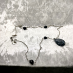 Collier argenté en labradorite et lave noire. Protection, intuition, ancrage.