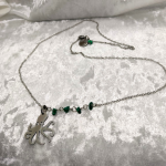 Collier argenté, pieuvre totem et malachite. Apaisement, régénération, mouvement souple.