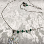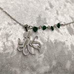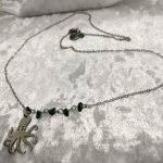 Collier argenté, pieuvre totem et malachite. Apaisement, régénération, mouvement souple.