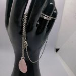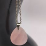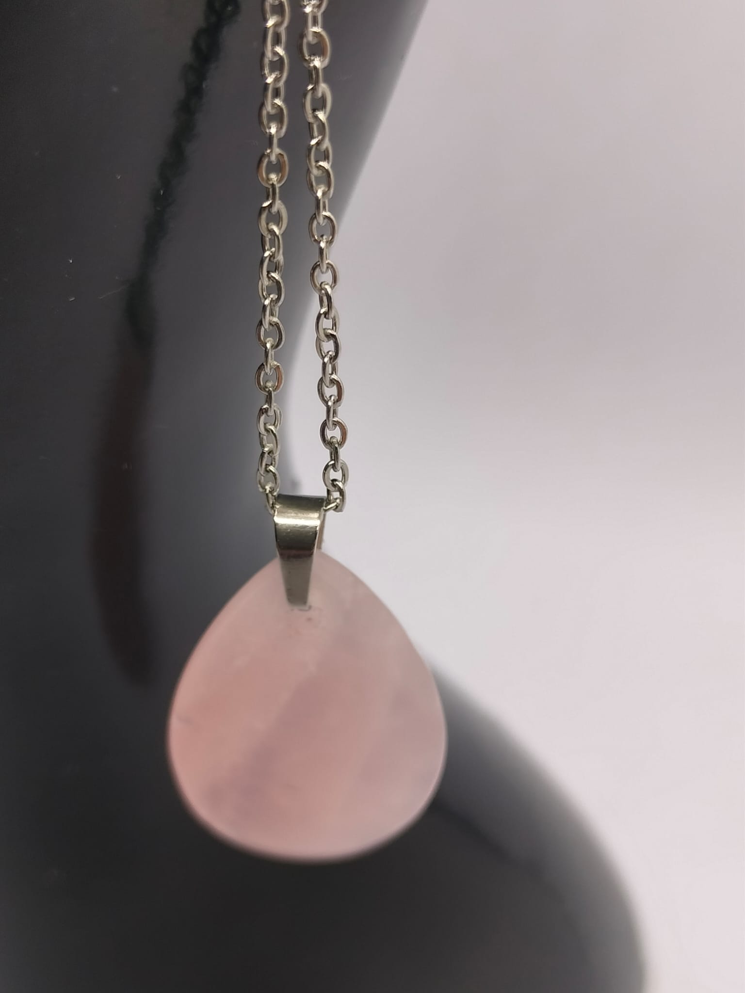 Né d’un éclat de quartz rose poli avec douceur, il se pose sur la poitrine comme une caresse.