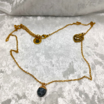 Invocation de lumière. Sur une chaîne dorée, une labradorite aux reflets d’aurore sert de garde-fou subtil.