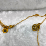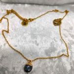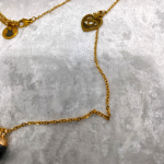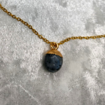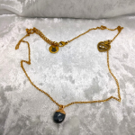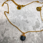 Invocation de lumière. Sur une chaîne dorée, une labradorite aux reflets d’aurore sert de garde-fou subtil.
