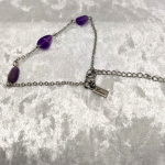 Trois perles d’améthyste sur chaîne argentée. Calme clair, protection légère, centre assuré.