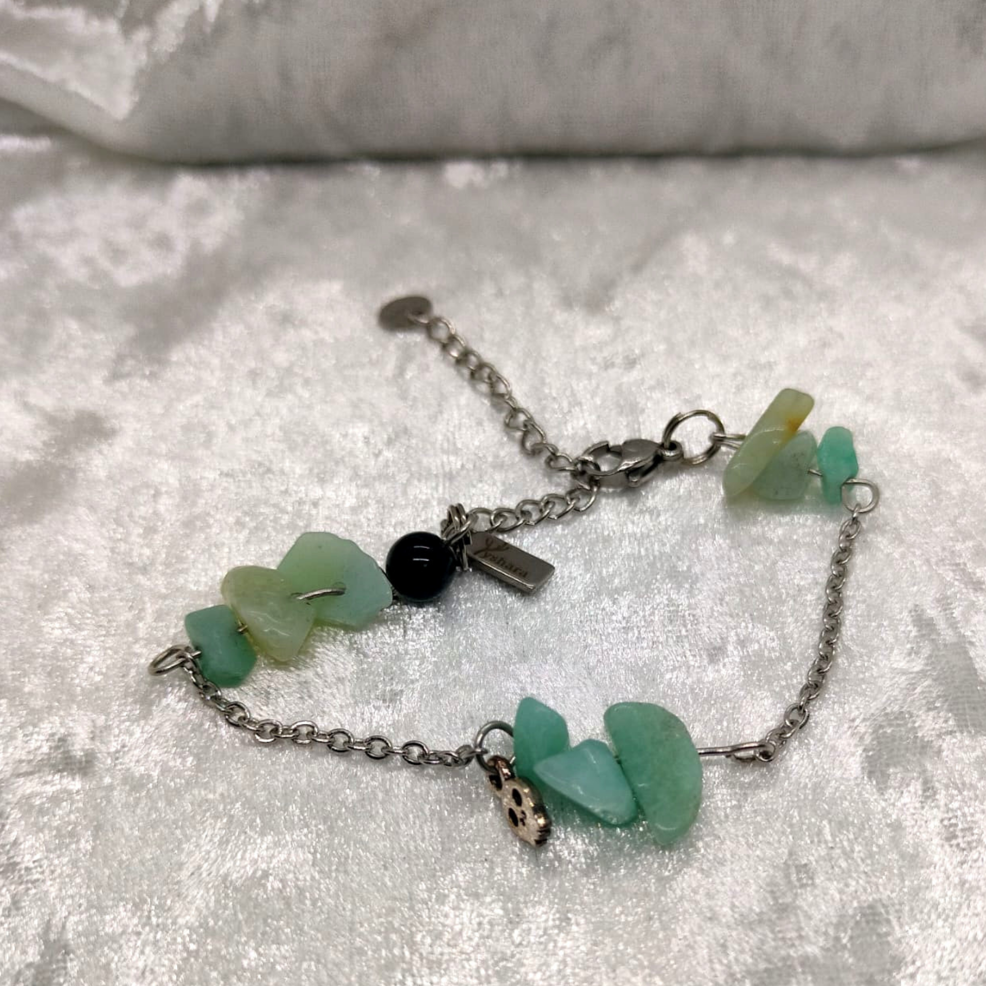 Pierres naturelles : éclats d’amazonite, 1 perle d’obsidienne