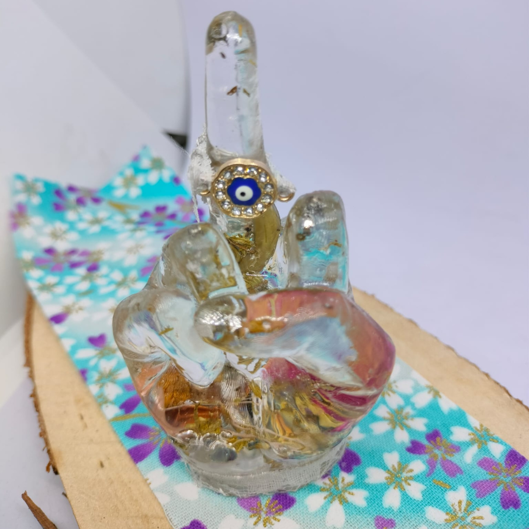 Nazar Queen est une œuvre thérapeutique, une gardienne rayonnante née d’un doigt levé, mais pas pour blesser.