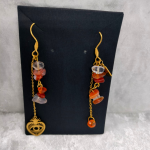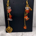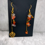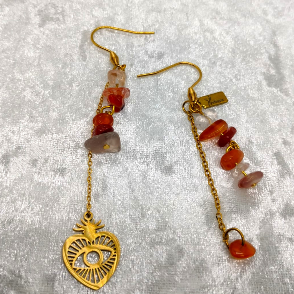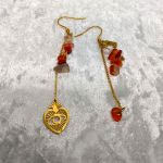 Boucles d’oreilles asymétriques en cornaline et acier doré.
