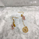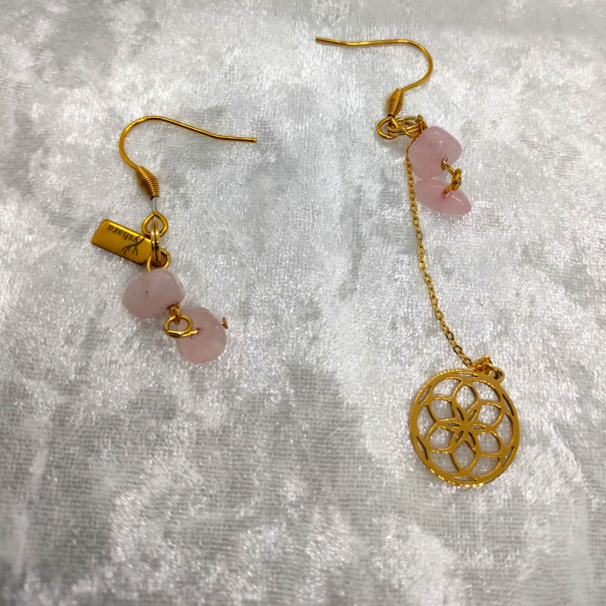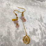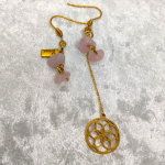 Rosa Harmonia célèbre l’équilibre. Une boucle courte, épurée, met la tendresse au premier plan. L’autre, élancée, prolonge le geste par une fleur de vie ajourée qui ordonne et amplifie l’énergie du cœur. Tu peux choisir comment les porter selon ton intention du moment. L’ensemble reste léger, lumineux, facile à porter au quotidien comme lors d’occasions plus sophistiquées.