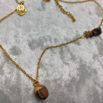 Collier doré, rhodonite naturelle, 41 à 46 cm